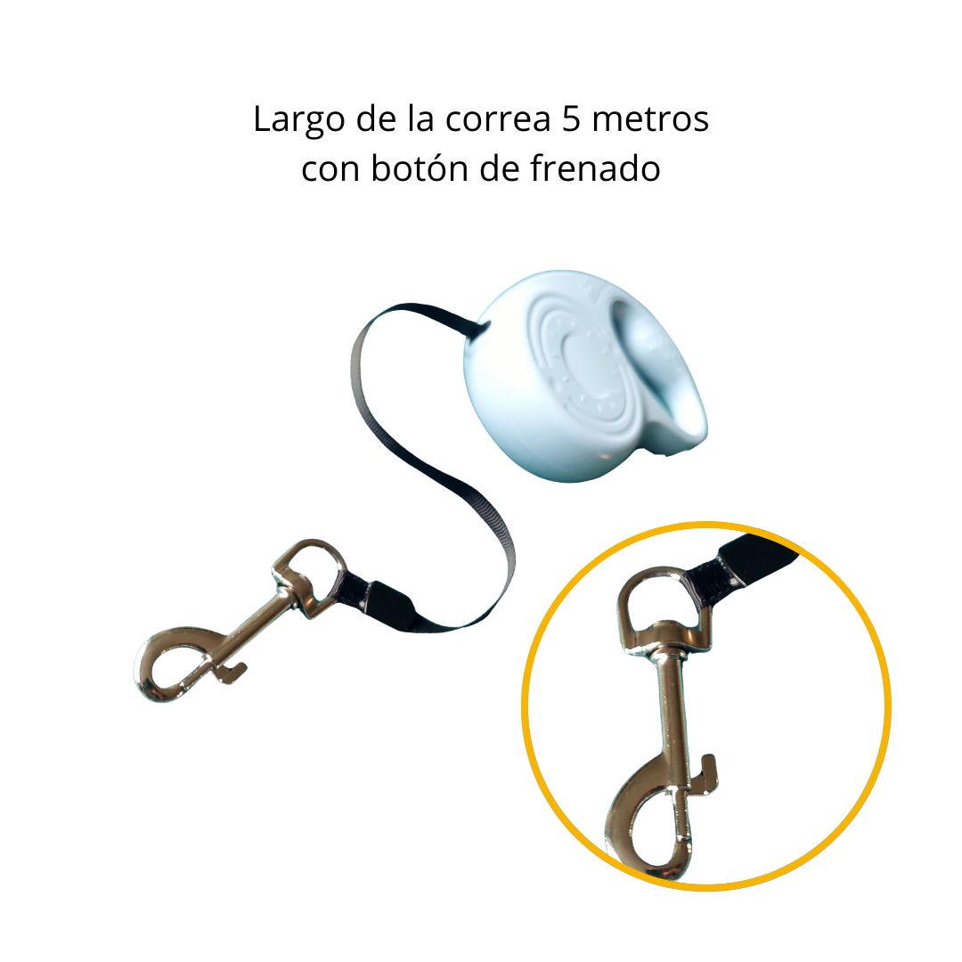 La correa retráctil de 5 metros y capacidad para 20 kg brinda a tu mascota una libertad de movimiento excepcional, permitiéndole explorar su entorno cómodamente mientras tú mantienes el control en todo momento. Su mecanismo automático permite extender y recoger el cordón de forma suave y sencilla, adaptándose a las necesidades de cada paseo. Este modelo es ideal para perros y gatos tranquilos de hasta 20 kg, proporcionando seguridad y comodidad tanto para ti como para tu compañero peludo.